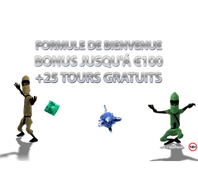 Premier dépôt uniquement. Dépôt min. : €20, Bonus max. €100. Game : Ninja Master, Valeur du tour : €0.20. EM de 60x le montant du Bonus et des gains sur Tours Gratuits (Machines à sous uniquement) dans les 30 jours. La mise max est de 10% (min 0,10 €) du montant des gains sur tours gratuits et du bonus ou 5 € (le plus faible montant s’applique). Les tours doivent être utilisés et/ou le Bonus doit être réclamé avant d’utiliser les fonds déposés. Le Bonus de bienvenue / de dépôt ne peut être réclamé qu’une seule fois par 72 heures dans tous les Casinos. La Politique sur les Bonus s'applique. Lire Maintenant